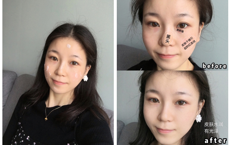 皮膚沒有那么干燥了,水潤有光澤,還有一點就是因為我經(jīng)常熬夜的原因